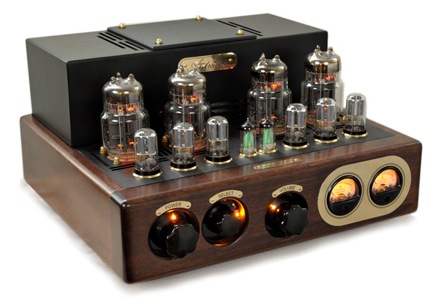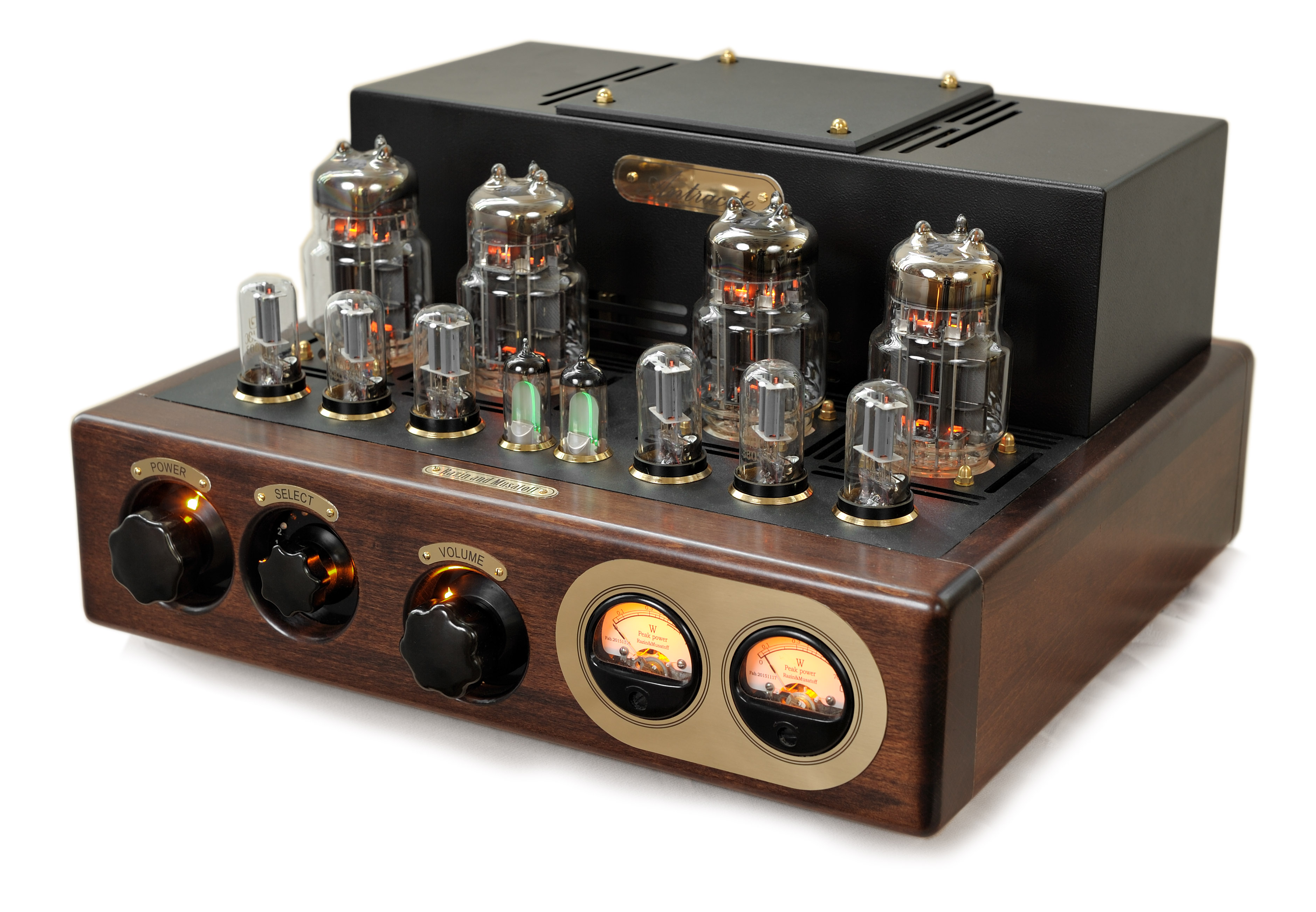 Усилитель снабжен полнофункциональным пультом дистанционного управления, с помощью которого можно: регулировать громкость, переключать входы, менять яркость подсветки светодиодов и другие функции. Особенно стоит отметить возможность изменять режим работы выходного каскада, регулируя режим от В до класса А. Это позволяет подстроить усилитель под конкретное применение от домашнего кинотеатра до вечернего прослушивания музыки. Усилитель снабжен двумя индикаторами "магический глаз", показывающими уровень выходной мощности. Полный раскрыв глаз соответствует максимальной мощности. Усилитель выставлялся на всех выставках Российский HiEnd вплоть до 2015 года и получил много положительных откликов. Уникальность данного усилителя состоит в том, что несмотря на то, что он является двухтактным, он практически не уступает по разрешению и микродинамике триодным однотактным усилителям, и несмотря что он является триодным, он не уступает по басу и макродинамике мощным пентодным двухтактным усилителям. Этот усилитель прекрасно работает как в виниловых трактах, так и в составе домашних кинотеатров. |
